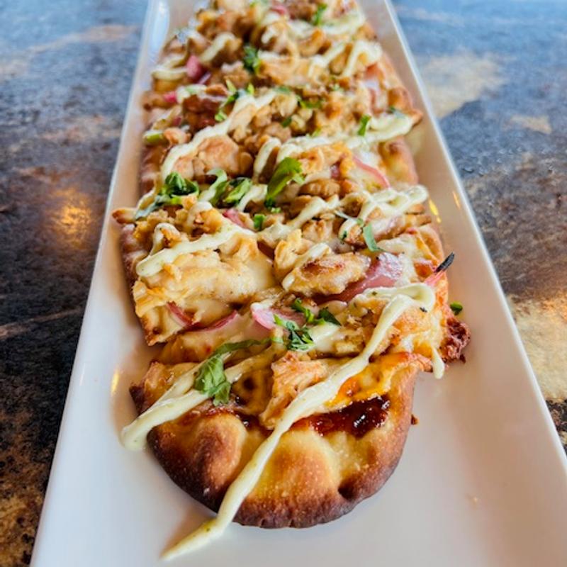 Chicken, pickled onion, cilantro, green onion, pepper jack, cilantro lime aioli, & sweet chili gochujang sauce.