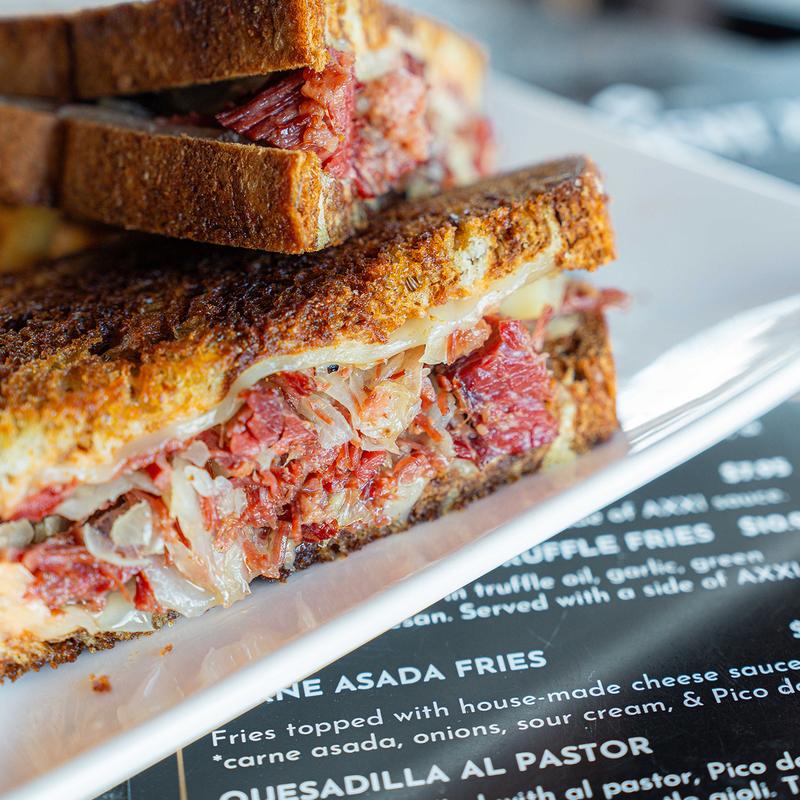 In-house cooked corned beef brisket, sauerkraut, Swiss, & Russian sauce. Served on marbled rye bread.