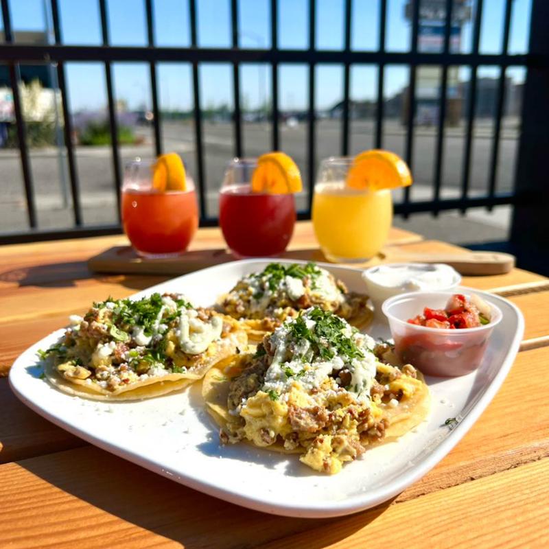 Corn tortilla chips sauteed with a red sauce. Layered with two *eggs any style, chorizo, cilantro, cotija, & sour cream.