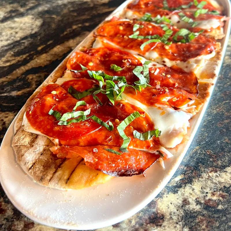 Pepperoni, fresh basil, red pepper flakes, mozzarella, & red sauce.